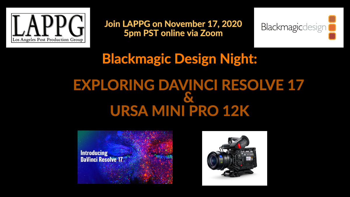 For those of you who missed it, Blackmagic Design recently announced the release of DaVinci Resolve 17, so we are excited to be able to add an up-close look for you to the meeting on November 17, 2020 via Zoom.
